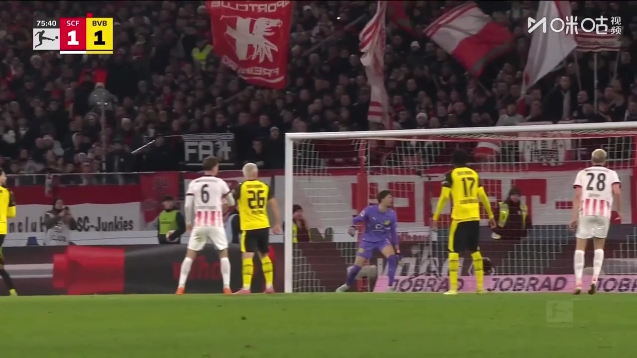 【集锦】德甲-小贝林厄姆染红霍勒凌空侧勾 十人多特1-1弗赖堡